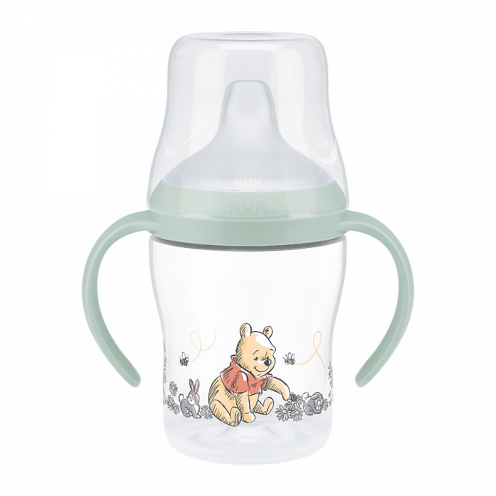 Dojčenská fľaša na učenie NUK Perfect Match s motívom Disney pomáha deťom prirodzene prejsť z dojčenskej fľaše na hrnček.