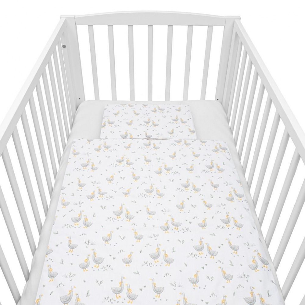 Detská 2-dielna súprava do postieľky New Baby Husičky. Súprava je vyrobená zo 100% bavlny. Kvalitné prevedenie a nádherný detský motív. Obsahuje obliečky na vankúšik cca 40x60 cm + obliečky na perinku cca 120x90 cm. Materiál 100% bavlna.