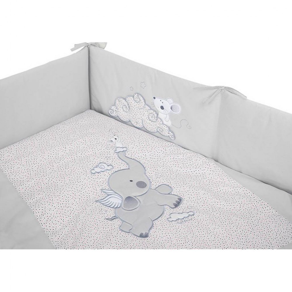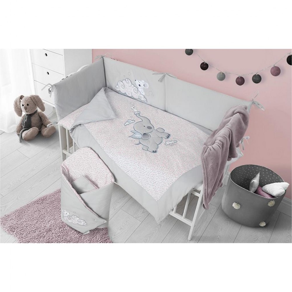 Krásna detská bavlnená 6-dielna súprava do postieľky Belisima Friends pre bábätká. Súprava je zdobená roztomilým sloníkom. Je vyrobená z mäkkého, príjemného materiálu. Súprava obsahuje obliečky na vankúšik cca 40x60 cm, obliečky na paplón cca 100x135 cm, mantinel cca 180 cm, vankůš a paplón, baldachýn. Materiál 100% bavlna.