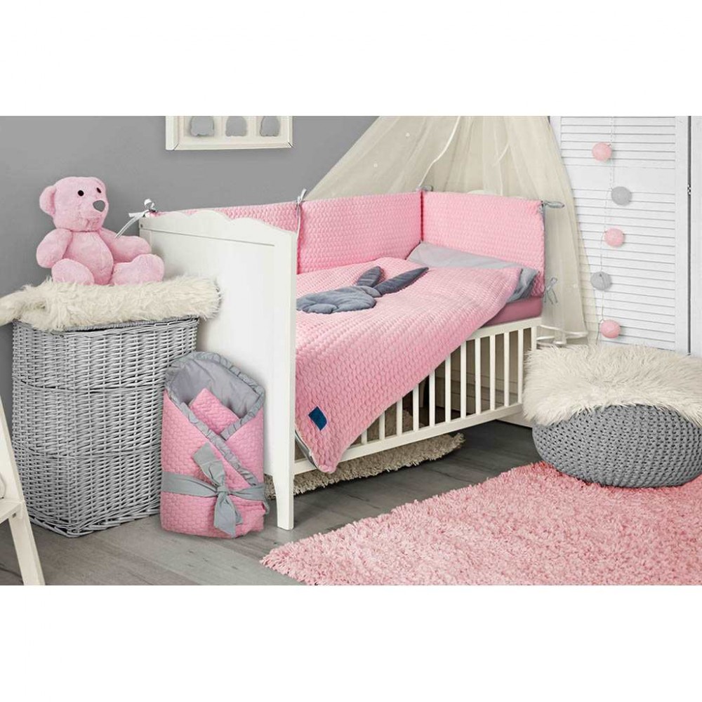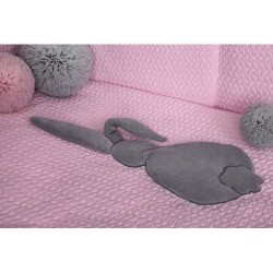 Detská 6-dielna súprava do postieľky Belisima Králiček pre bábätká. Súprava je z jednej strany z úpletového materiálu zdobená 3D vzorom a roztomilým plyšovým králičkom. Druhá strana je bavlnená. Je vyrobená z mäkkého, príjemného materiálu. Zloženie: vrchná úpletová strana: 50% bavlna, 50% polyester. Spodná strana: 100% bavlna. Súprava obsahuje obliečku na vankúšik cca 40x60 cm, obliečku na paplón cca 90x120 cm, mantinel cca 180 cm, výplň: vankúšik, paplón a nebesá. Nebesá: 150x200 cm.