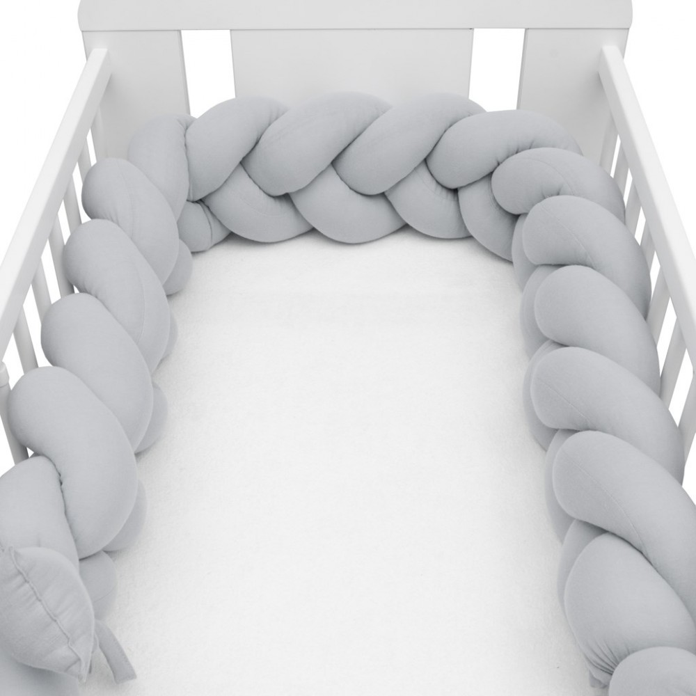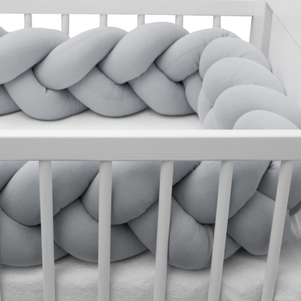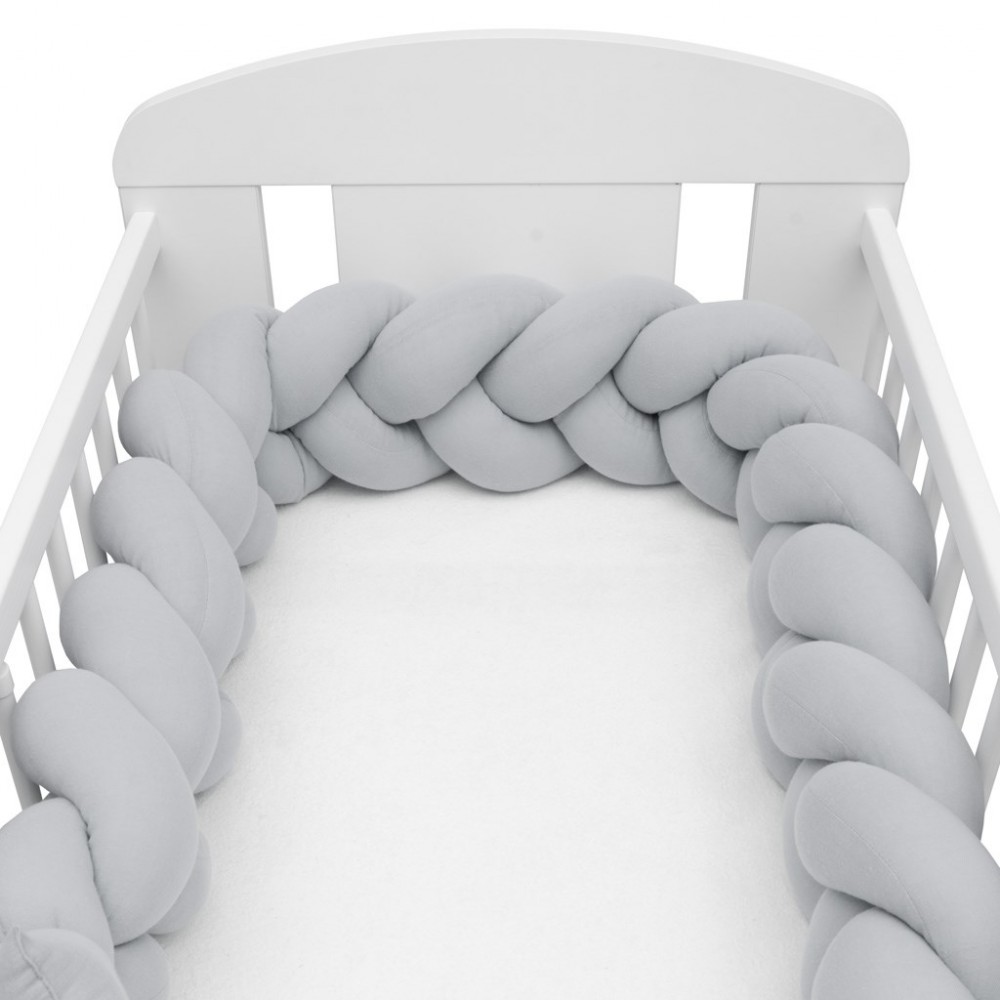 Hebučký a praktický pletený vrkoč New Baby je modernou alternatívou tradičného alebo vankúšového mantinelu nielen do detskej postieľky. Všetky tri pramene sú vyrobené z veľmi kvalitného bavlneného materiálu a antialergickej polyesterovej výplne a ručne spletených do vrkoča. Môžete ho použiť v postieľke, kolíske, kde chráni dieťa pred tvrdými priečkami postieľky a izoluje od studenej steny. Vo vašej posteli splní funkciu hniezdočka, kedy bábätko jednoducho oviniete pre ešte väčší pocit bezpečia a pohodlia. Mantinel sa prispôsobí každej postieľke a pomocou troch priložených stúh ho ľahko upevníte. Staršie dieťa ho môže využívať pre zábavu alebo ako originálnu dekoráciu detskej izby.