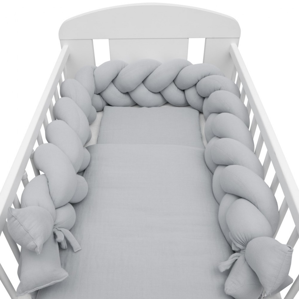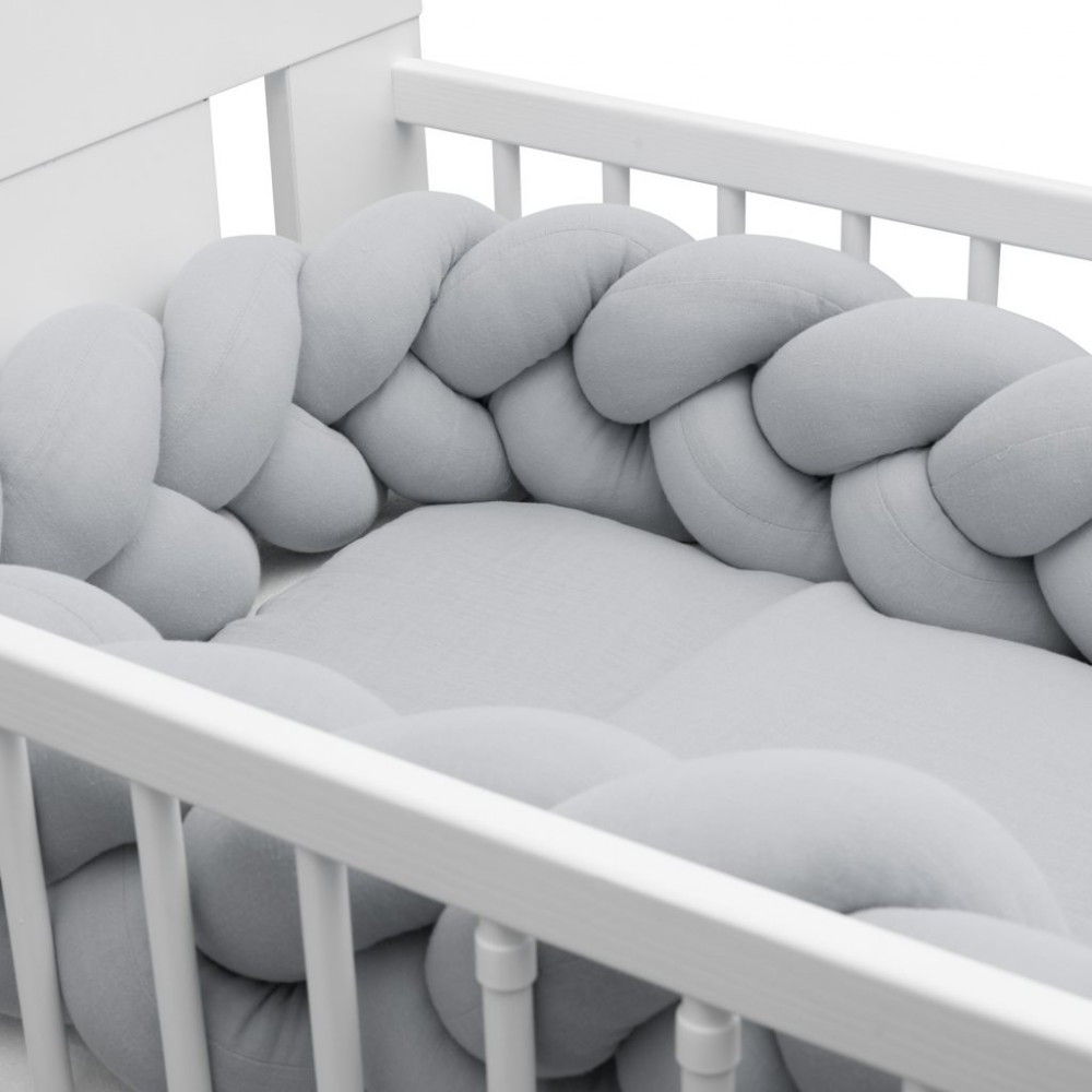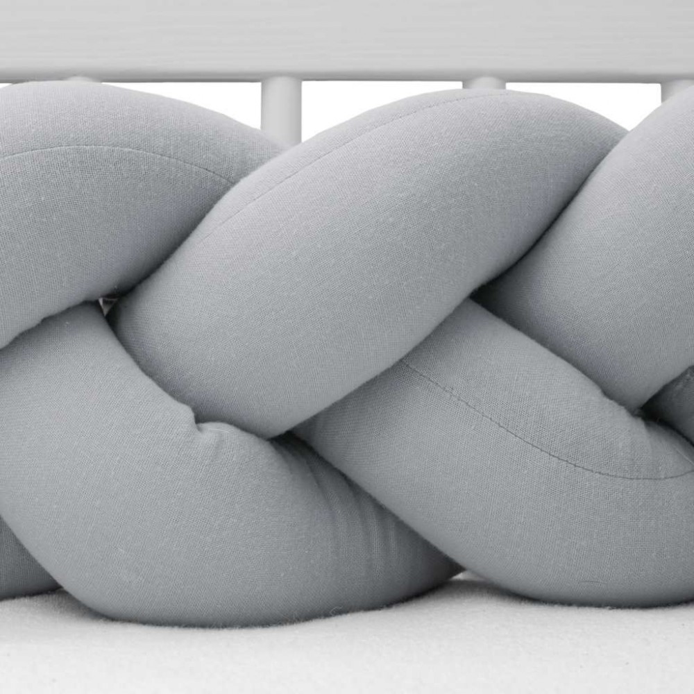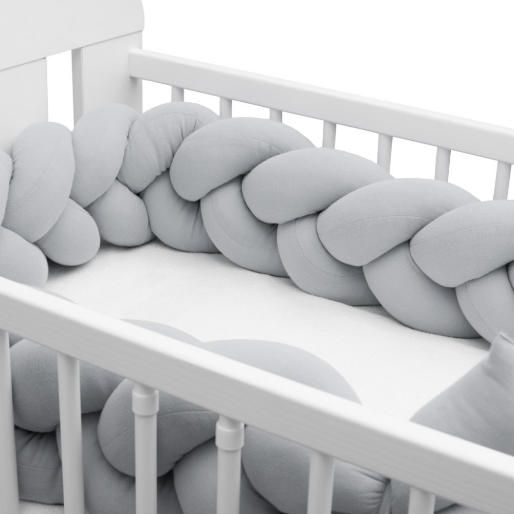 Hebučký a praktický pletený vrkoč New Baby je modernou alternatívou tradičného alebo vankúšového mantinelu nielen do detskej postieľky. Všetky tri pramene sú vyrobené z veľmi kvalitného bavlneného materiálu a antialergickej polyesterovej výplne a ručne spletených do vrkoča. Môžete ho použiť v postieľke, kolíske, kde chráni dieťa pred tvrdými priečkami postieľky a izoluje od studenej steny. Vo vašej posteli splní funkciu hniezdočka, kedy bábätko jednoducho oviniete pre ešte väčší pocit bezpečia a pohodlia. Mantinel sa prispôsobí každej postieľke a pomocou troch priložených stúh ho ľahko upevníte. Staršie dieťa ho môže využívať pre zábavu alebo ako originálnu dekoráciu detskej izby.