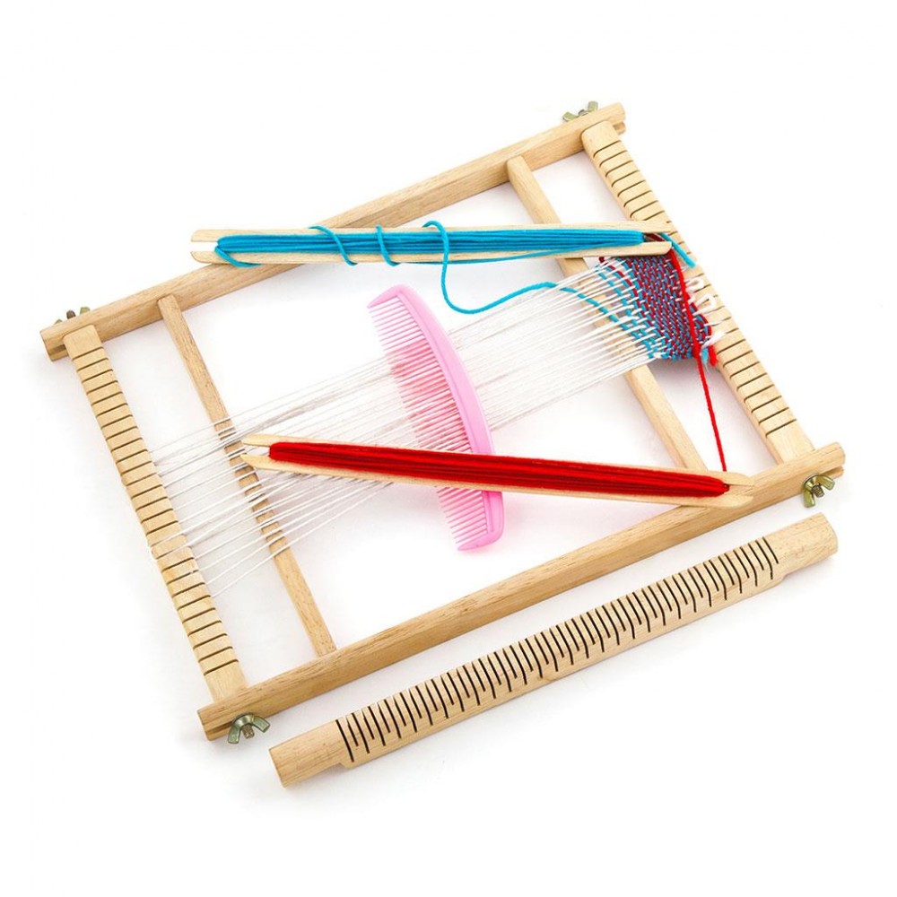 Drevené ručné krosná, na ktorých si dieťa môže vytvoriť vlastnú látku.