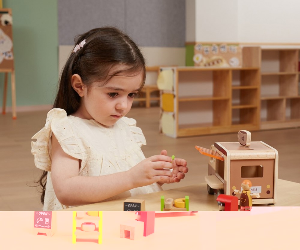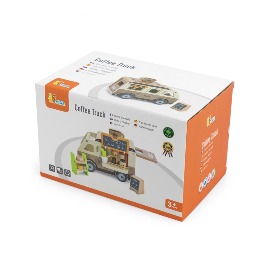 Pevná drevená konštrukcia a starostlivo zvolené pastelové farby použitím netoxických farieb robia hračku nielen esteticky príťažlivou, ale aj bezpečnou pre najmenších. Súprava je navrhnutá s ohľadom na rozvoj fantázie, manuálnych zručností a sociálnych schopností detí a ponúka hodiny tvorivej zábavy. Perfektná pre deti, ktoré milujú dobrodružstvo a snívajú o vlastnej mobilnej kaviarni na kolieskach.