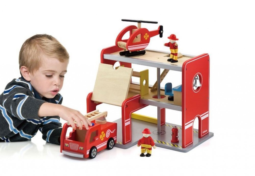 Drevená hasičská stanica od spoločnosti Viga je jednou z najkrajších hračiek, ktorá dlho vydrží a poskytne vášmu dieťaťu mnoho rokov zaujímavej a kreatívnej hry. Hasičská stanica je vybavená garážou, v ktorej je zaparkované hasičské auto. Okrem toho má spoločenskú miestnosť, kde si hasiči po každom zásahu oddýchnu. V hornej časti sa nachádza klzisko pre vrtuľník. Domček je vybavený aj rúrou, po ktorej sa hasiči môžu spustiť k požiaru. Hračka poskytne vášmu dieťaťu mnoho hodín nezabudnuteľnej zábavy.