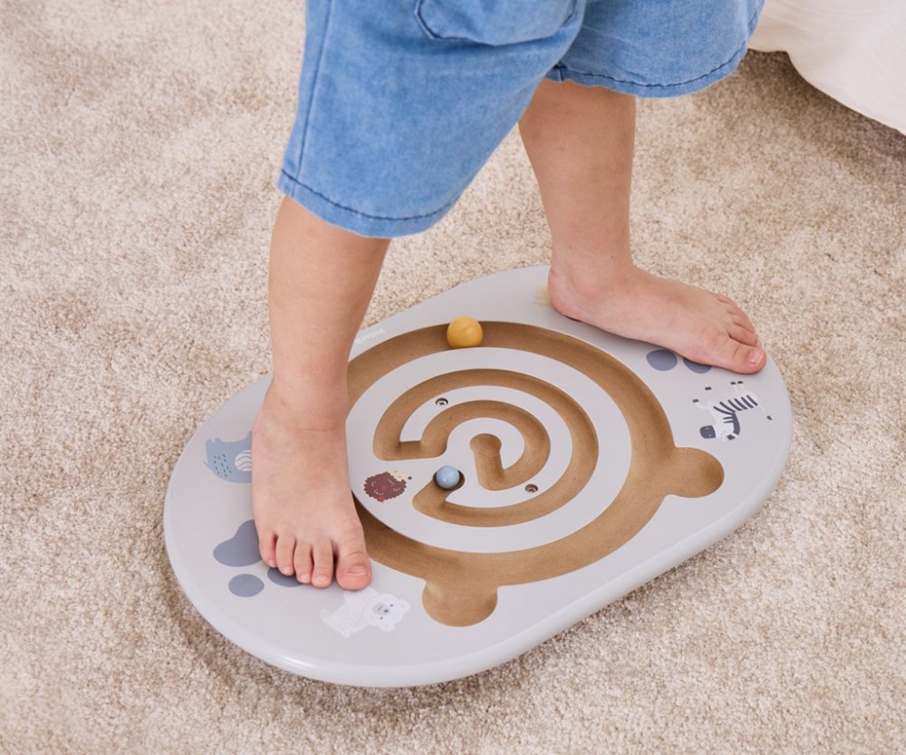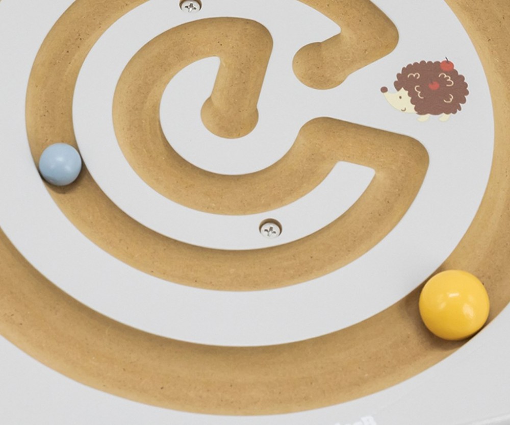Balansujúci labyrint je ideálna hračka pre deti od 4 rokov, ktorá podporuje rozvoj rovnováhy, pohybovej koordinácie a koncentrácie. Sada obsahuje balančnú dosku s vyfrézovaným labyrintom v tvare medvedíka a dve drevené guličky. Úlohou dieťaťa je pomocou balansovania posúvať guľôčku po dráhe, čím si hravou formou trénuje rovnováhu a kontrolu tela.