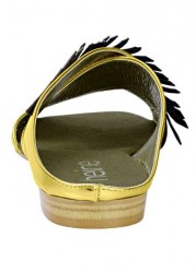 S "GLAM" faktorom. Nádherná pantoleta z mäkkej kože nappa a vznešeného kovového vzhľadu. Trend zvýraznenie - kontrastné okrajové aplikácie v zhľade peria. Pohodlný syntetický interiér s polstrovanou stielkou. Nízka päta poskytuje optimálny komfort. Syntetická podrážka. výška opätku cca 1,6 cm