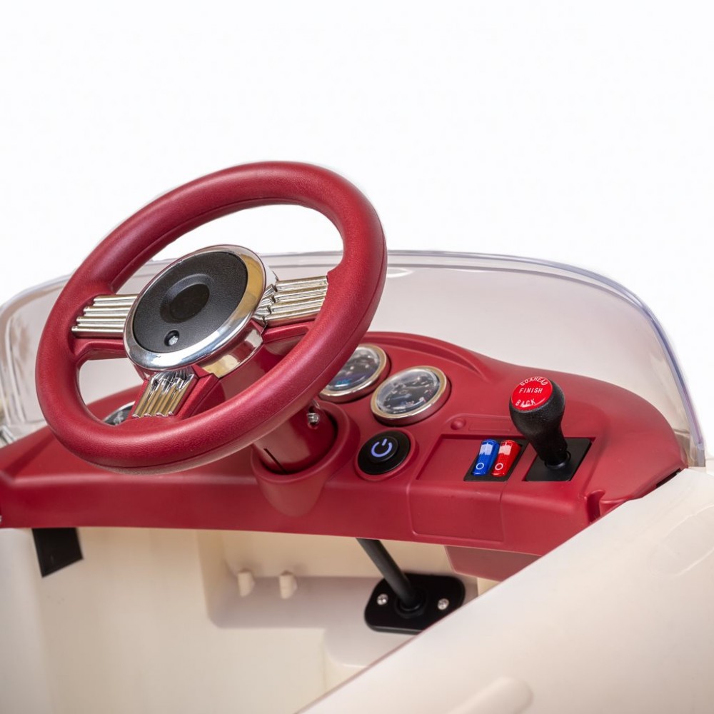 Zažite nekonečné dobrodružstvá s detským elektrickým autíčkom Retro Pearl White, ktoré kombinuje klasický šarm s modernými funkciami. Toto pútavé auto je ideálne pre malých dobrodruhov, ktorí hľadajú zábavu a vzrušenie. Vďaka elegantnému bielemu vyhotoveniu a dizajnovým prvkom inšpirovaným retro štýlom, ako sú chrómové detaily a retro maska na prednej strane, sa toto autíčko určite stane očarujúcim doplnkom každej detskej izby alebo záhrady. Toto elektrické autíčko na hranie sa ľahko používa a ponúka bezpečnú jazdu. S rýchlosťou od 2 do 4,5 km/h, poháňané 18 W motorom a 6 V 4,5 AH batériou, zaručuje deťom vzrušujúci a zároveň bezpečný zážitok. Jeho robustná konštrukcia, bezpečnostný pás a jednoduché ovládanie poskytujú bezpečnú jazdu