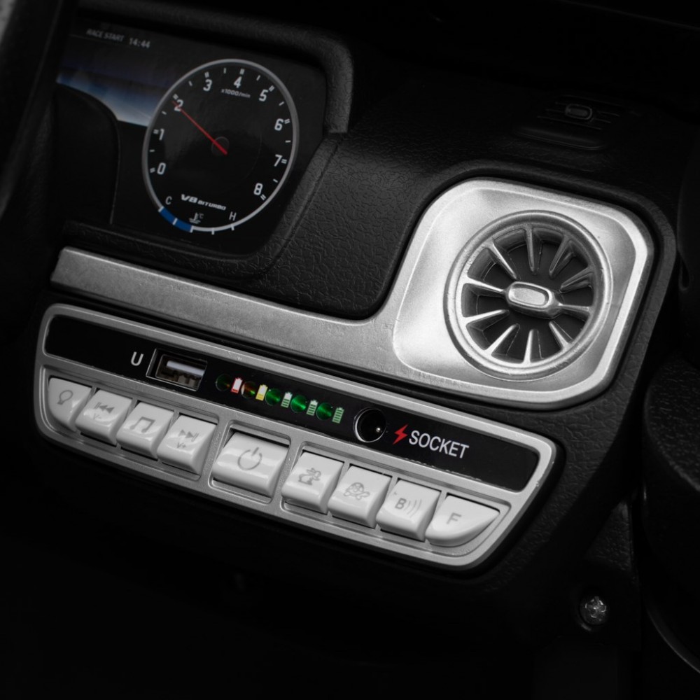 Autíčko vychádza z obľúbeného modelu Mercedes-Benz G63 AMG a zaujme precíznym vypracovaním – od športového volantu cez prehľadnú palubnú dosku až po štýlové kolesá s logom Mercedes. Otváracie dvere a predné LED svetlá dodávajú autíčku autentický vzhľad.