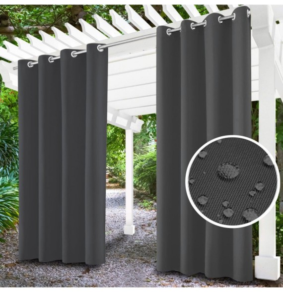 Záhradný záves na kruhoch grafitovej farby je odolný voči poveternostným podmienkam, odolný voči slnečnému žiareniu, vďaka čomu farby na slnku nevyblednú. Vďaka nepremokavej vlastnosti nás terasové závesy ochránia pred dažďom a zároveň nám zútulnia altánok či terasu.