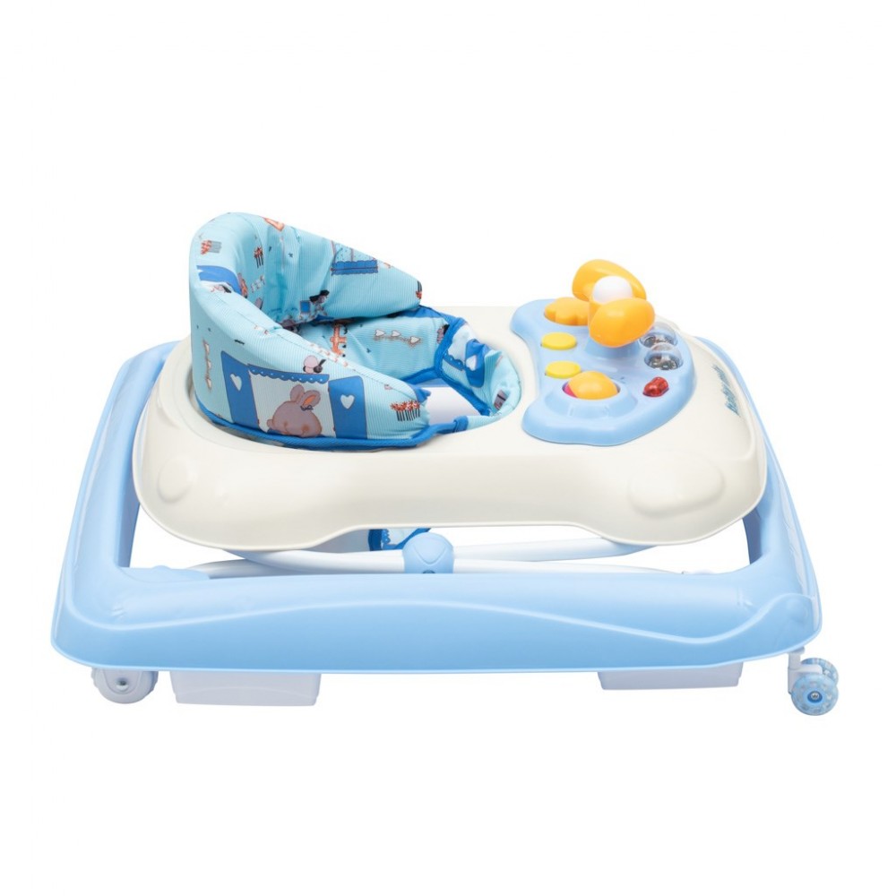 Multimediálne chodítko Baby Mix so silikónovými kolieskami. Chodítko je vybavené pohodlným ergonomicky tvarovaným sedadlom, ktoré zaisťuje správne držanie chrbtice. Multimediálny panel obsahuje rôzne svetelné efekty, trúbiaci volant, ktorým možno otáčať,, tlačidlá pre prehrávanie melódií a dve svetlá. Krásne chodítko s hračkami očarí malých objaviteľov a umožní im hrať sa ešte dlhšie. Chodítko je vybavené špeciálnym systémom proti prevráteniu, ktorý zaistí Vášmu dieťaťu pohodlie a bezpečnosť.