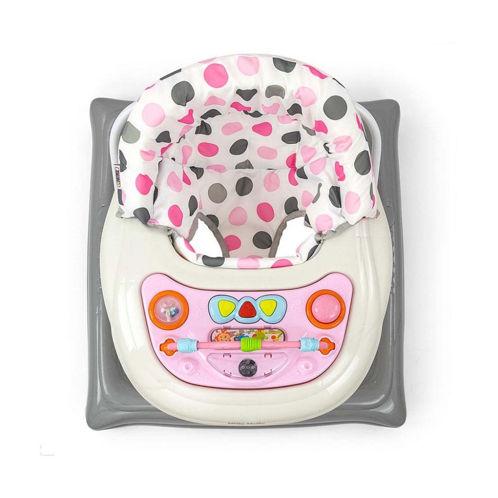 Výrobok má výukový panel, ktorý obsahuje množstvo prekvapení čakajúcich na malých prieskumníkov: svetielka, pískanie, melódie, hrkálka, tlačidlá a ďalšie pohyblivé prvky. Po sňatí panelu z podnosu chodítka poslúži ako samostatná hračka, napríklad ako spoločník na cesty, a doska poslúži ako hrací stolík.