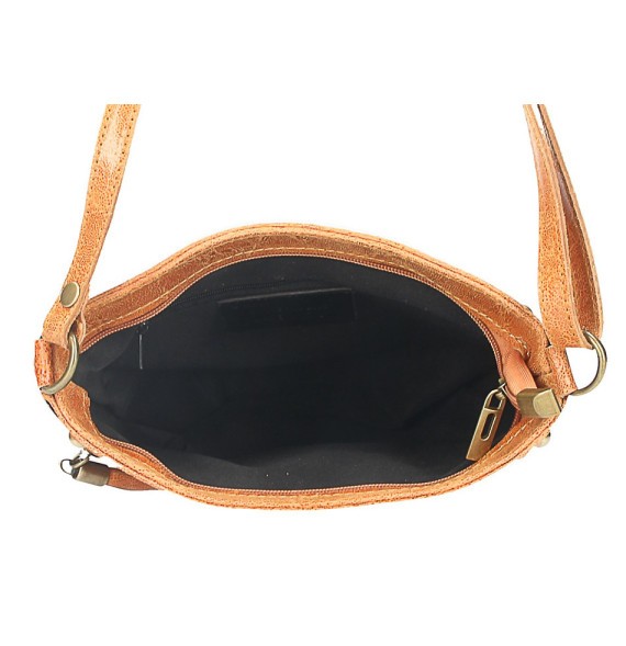 Kožená crossbody kabelka s voľne nastaviteľným koženým popruhom.