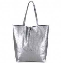 Kožená shopper kabelka 396 strieborná, Strieborná