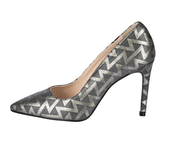 Elegantné kožené lodičky s elegantnou trblietavou kovovou grafickou potlačou dávajú každému outfitu špeciálny nádych. Absolútny trend zvýrazňuje efektívna farebná zmes a rafinovaný strih. Ženský dizajn, pohodlná koža / syntetický interiér s mierne polstrovanou stielkou, filigrán a ihlové podpätky. Syntetická podošva. výška opätka cca 10,5 cm