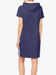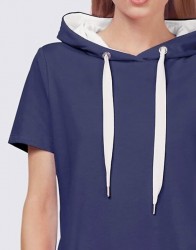 Ležérny, športový vzhľad majú tieto teplákové šaty od Ricka Cardonu s kontrastnými pruhmi na bokoch, našitými vreckami vpredu a kapucňou s kontrastnou podšívkou a sťahovacou šnúrkou. Priliehavá, ležérna silueta s krátkymi rukávmi. Dĺžka 91 cm (veľkosť 38). Pohodlná teplá kvalita vyrobená zo 100% bavlny (Bavlna vyrobená v Afrike), lemovky zo 100% bavlny.