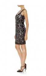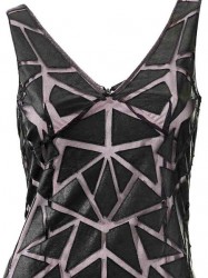 Užite si dotyk luxusu. Extravagantný štýl a zvodný vzhľad dizajnérske koktejlové šaty v patchworkovom vzhľade. Jemná sieťovina, záplatovaná imitáciou kože a nepriehľadná podšitá kontrastným návlekom z lesklej džersejovej látky. Špicatý výstrih vpredu aj vzadu. Jemný šev, zadný zips. Priliehavé postave. Dĺžka 90 cm. Mierne priehľadná sieťovina vyrobená zo 100% polyesteru. 100% polyesterová imitácia kože potiahnutá 100% polyuretánom. 100% polyesterová džersejová podšívka.