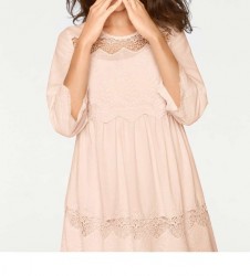 Hippie štýl v obľúbenom romantickom looku. Nádherne hravé a ženské, prezentujú sa vyšívanou čipkou.Priliehavý vrchný diel s okrúhlym výstrihom, zapínanie na gombík na krku a 3/4 rukávy. Priehľadné vyšívané časti v dekolte a dole.Zvýšený pás s vlnitým ozdobným okrajom. Široký diel sukne s okrajom z vlnitej čipky.dĺžka 90 cm, príjemný materiál zo 100% bavlny, spodnička je zo 100% bavlny, čipka 100% bavlna