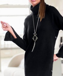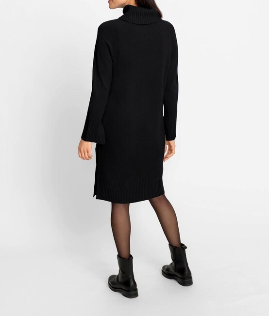 Pre vašu extra porciu štýlu! Tieto ženské pletené šaty zaujmú množstvom dekoratívnych prvkov! Všestranný špičkový módny partner v mäkkej hrejivej kvalite s vlnou. S rolákom, efektným rozparkom na dlhých rukávoch a ozdobnou gombíkovou légou na bokoch, ktorá sa dá rozopnúť a vytvoriť tak rozparok. Rebrované manžety. Rovný tvar. Dĺžka 100 cm. Teplý úplet vyrobený zo 70% polyakrylu/30% panenskej vlny.