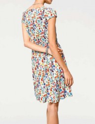 Extravagantný vzhľad sa spája s veľkým pohodlím. Očarujúce šaty s potlačou, veľmi trendy s farebne intenzívnym, hravým kvetinovým vzorom. Príjemná kvalita s jednoduchou údržbou vyrobená zo 100% viskózy. Dôkladne vypracované šaty s priliehavým topom, krátkymi rukávmi a hlbokou légou na gombíky. Smockova riasená vsadka v páse. Rozšírená sukňová časť. Dĺžka 100 cm.