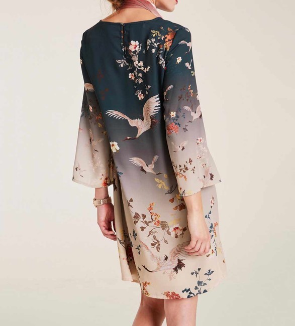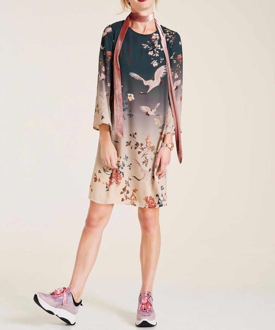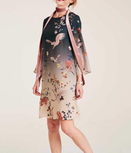 Očarujúce šaty s magickou celoplošnou potlačou. S okrúhlym výstrihom, zapínaním na šiji a štýlovými 3/4 rukávmi. Nepriehľadná spodnička na tenké ramienka je súčasťou. dĺžka cca 97 cm jemne padavá kvalita vyrobená zo 100% polyesteru, 95% polyesteru / 5% spandexu