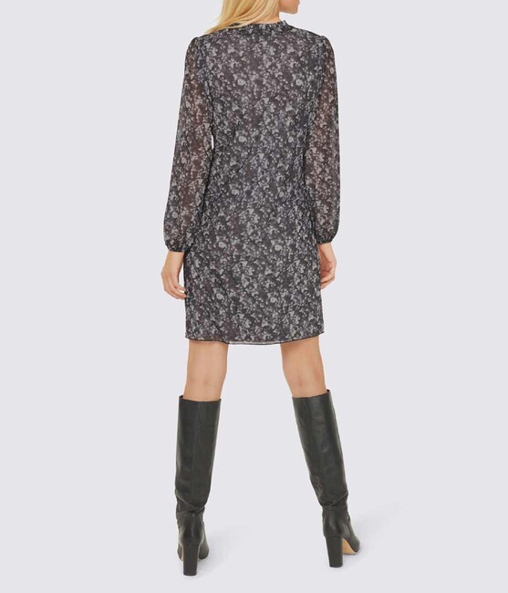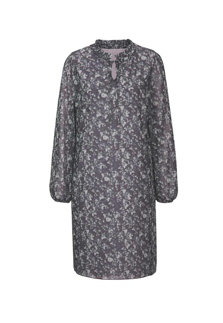 Obľúbený kúsok na každý deň. Očarujúce šaty v sieťovanej kvalite s potlačou. Mierny tvar A. Okrúhly výstrih s otvoreným V, volániky vo výstrihu a zaväzovacie ramienko. Na tele podšité. Priehľadné, široké dlhé rukávy s elastickými manžetami na konci. Dĺžka 96 cm. Sieťovina vyrobená z 97% polyesteru / 3% elastanu. Podšívka 95 % viskóza/5 % elastan.
