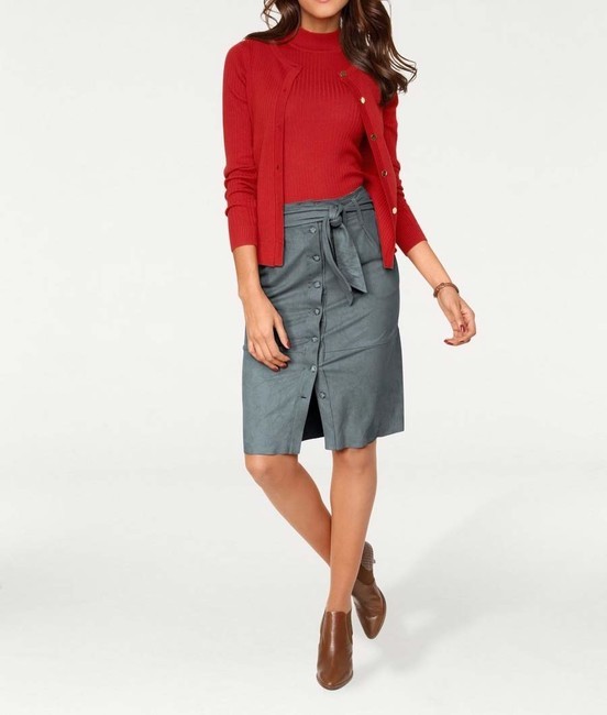 Inovatívna sukňa v zvodnej siluete. Vyrobené z imitácie mäkkého semišu. Detailný pohľad - gombíky, štýlový široký opasok a ležérne bočné vrecká. Prepracované deliace švy. dĺžka cca 62 cmpríjemná, ľahká starostlivosť, klamlivo originálna kvalita z 92% polyesteru / 8% spandexu