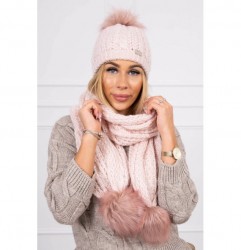Dámsky set čiapka a šál MIK199 pudrovo ružový Univerzálna