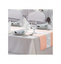 Behún na stôl GLAMOUR so zirkónmi, pôvodne prezentovaný ako samostatná dekorácia alebo v kombinácii so svetlým či tmavým obrusom. Jeho jedinečný zirkónový pás umožňuje prestieraniu získať ďalší lesk tým, že vytvorí vynikajúcu kompozíciu stola.
