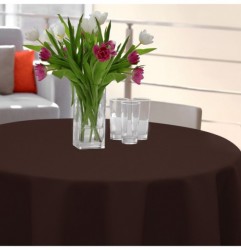 Okrúhly obrus Standard tmavohnedej farby je elegantnou dekoráciou, vyrobený špeciálne pre stoly s guľatým tvarom vrchnej časti. Obrus sa vyznačuje vysokou kvalitou, čo je vidieť na pevnej a odolnej štruktúre materiálu.