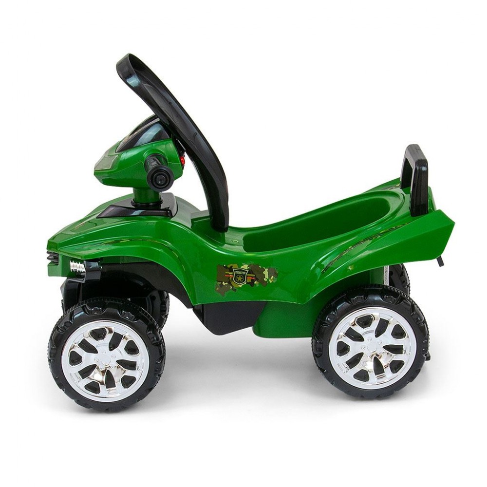 Odrážadlo je vybavené množstvom príslušenstva a pod sedadlom sa nachádza úložný priestor, do ktorého si váš malý vodič môže uložiť svoje najcennejšie poklady a vziať ich všade so sebou. Interaktívny volant s hudobným panelom ešte viac povzbudzuje vaše dieťatko k hre a spríjemňuje hru pomocou tlačidiel, ktoré prehrávajú rôzne melódie. Riadenie a tlačenie má pozitívny vplyv na motorickú koordináciu, stimuluje a podporuje hmatové zručnosti a zvyšuje presnosť pohybov rúk, zatiaľ čo zvukové signály a farebné svetlá stimulujú sluch a zrak dieťaťa.