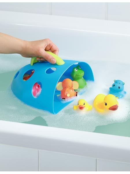 Plastový box na hračky do vane s úchytom a prísavkou pre uchytenie. Vyrobené z kvalitného plastového materiálu. Rozmery: cca 25x22 cm.