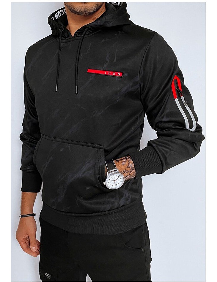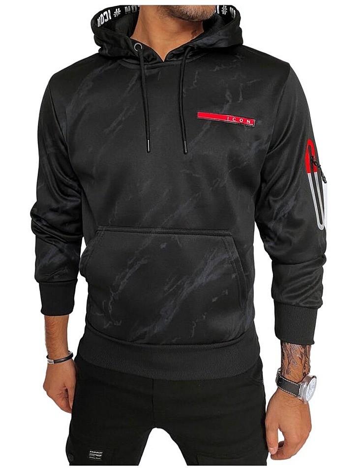 Pánska mikina s kapucňou. Mäkký a príjemný materiál. Obliekanie cez hlavu. Dvojvrstvová kapucňa nastaviteľná pomocou šnúrky. Potlač na kapucni. Klokanie vrecko. Ľahko zateplená. Spodná časť a rukávy zakončené rebrovaním. Pohodlný strih.
