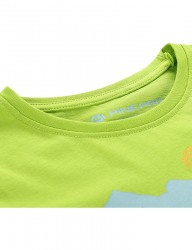 Detské tričko ECCO je vyrobené z organických bavlny, ktorá je pestovaná z geneticky nemodifikovaných rastlín, bez použitia syntetických chemikálií. Materiál je vždy trochu iný. Potlač umiestnená v prednej časti je ekologicky ladená ako celé tričko. Prvá vec, ktorú môžete vidieť, je WORLDO. Materiál: 100% organický.