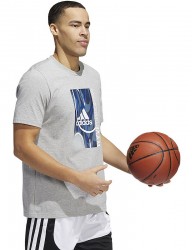 Pánske tričko Adidas šedej farby. krátky rukáv na hrudníku veľké logo značky