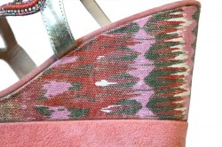 Užite si nádych luxusu. Elegantné sandále - extravagantné v štýle a zvodné - absolútna jednotka v elegancii. Neobvyklý dizajn s kamienkami, perlami a flitrovými remienkami. Klinová opätok a moderná platforma s ušľachtilým potlačeným poťahom s efektnými trblietavými efektmi, každá potlač je mierne odlišná. Zvršok z jemnej nappa kože a textilný zvršok. Podrážka z kože a stielka. Podrážka: syntetická.platforma 4 cm, výška podpätku približne 11 cm (pre veľkosť 37)