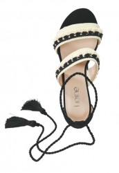 Letné zvýraznenie v extravagantnej zmesi farieb a materiálov. So zaujímavými strapcovými prvkami. Dekoračné šnúrky na zaviazanie so strapcami. Výška opätku 5 cm (veľkosť 38) Vrchný materiál zo 100% kožušinového semišu s textilným okrajom, vnútorný: synteticka / koža, podrážka: syntetická.