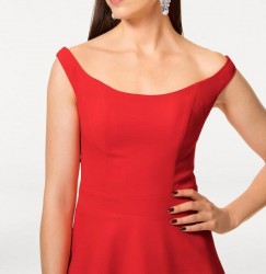 Krása od dizajnérskej ruky. Korzetové šaty so zvodnými detailami - vzrušujúci Carmen výstrih a nádherny zadný výstrih so šnurovaním. Vstavaná korzetová časť s integrovanými kosticami zaručuje dokonalé uchytenie kde nie je už potrebná podprsenka. Široká sukňa so spodničkou. Šikovný zips na boku. dĺžka cca 100 cm jemne padavá kvalita vyrobená zo 100% polyesteru, podšívka: 90% polyester / 10% spandex, podšívka zo sieťoviny: 100% polyester