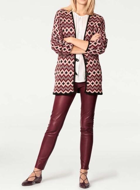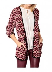 Veselý kardigán s etno vzorom v krásnej farebnej kombinácii. Nápadný pletený plášť sa prezentuje vedomým spôsobom v neformálnom strihu. Bočné vrecká. Dĺžka cca 76 cm. Príjemne jemný úplet zo 70% polyakrylovej / 30% bavlny.