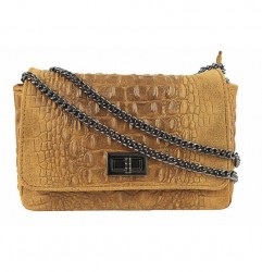 Talianska kožená kabelka potlač krokodýl 439 žltá,