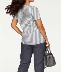 Zamilovať si toto ženské a ušľachtilé tričko je jednoduché. Kombinované tričko s pruhmi a módnymi flitrami v dvojtónovom vzhľade. Nekomplikovaný okrúhly výstrih s dekoratívnou, kužeľovou flitrovou vložkou v oblasti výstrihu a krátkymi rukávmi. dĺžka cca 70 cm, merané na veľkosti 40 džersej kvalita 95% viskózy / 5% spandexu